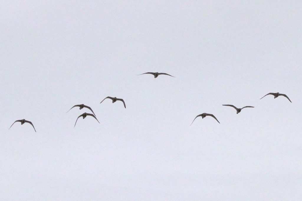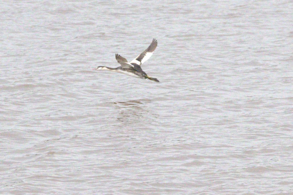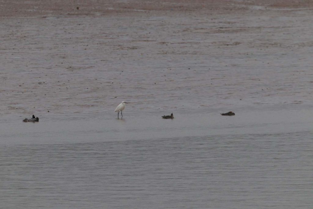 Great Crested Grebes were present in small parties, with some developing the colourful plumes of their summer plumage. Another bird seen well was a Greenshank at the River Kenn outfall; as a classic ‘grey bird against the grey mud in grey weather’, these birds can be difficult to see, but we were lucky to find one feeding in the cascade of flood water. Again, we were able to take the time to see it properly.