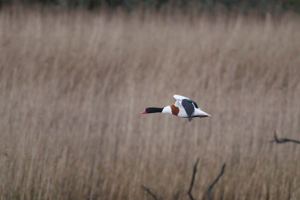 The number of Black-tailed Godwits was lower than expected, probably because the birds are either feeding on the flooded marshes or have departed for their Icelandic breeding grounds, but there were several hundred each of Dunlin, Redshank and Golden Plover, with occasional Shelduck and Cormorants scattered across the vast mudflats on both sides of the Topsham channel. At Topsham, the turning circle had a single male Goldeneye, but our attempts to rotate the boat so everyone could see it were not a success as it promptly flew off upriver.