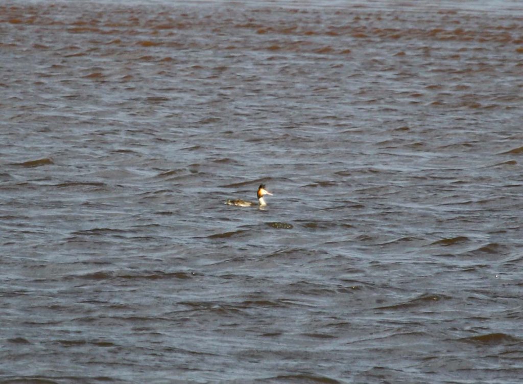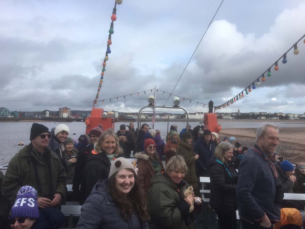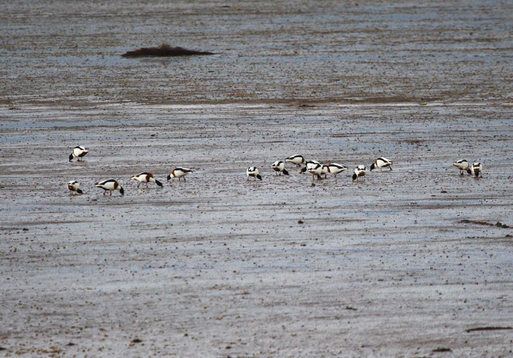 There were several Oystercatchers and a couple of Turnstones on the Dawlish Warren Wildlife Refuge area, with Curlew feeding along with a few Shelduck and Dark-bellied Brent Geese in the Shutterton Brook Channel as we sailed by. Great Black-backed Gulls and several Common Cormorants were lingering on Bull Hill Sandbar – as always, a couple were showing early signs of breeding plumage, with the white thigh patch showing under the wings. A couple of Great Crested Grebes were seen fishing off Starcross along with an odd common Redshank; a small flock of Dark-bellied Brent Geese was also seen here. Two Red-breasted Mergansers were seen at a distance, and on the sandbank off Starcross foraging amongst the seaweed, several Turnstones were spotted, though their camouflage made them hard to see.