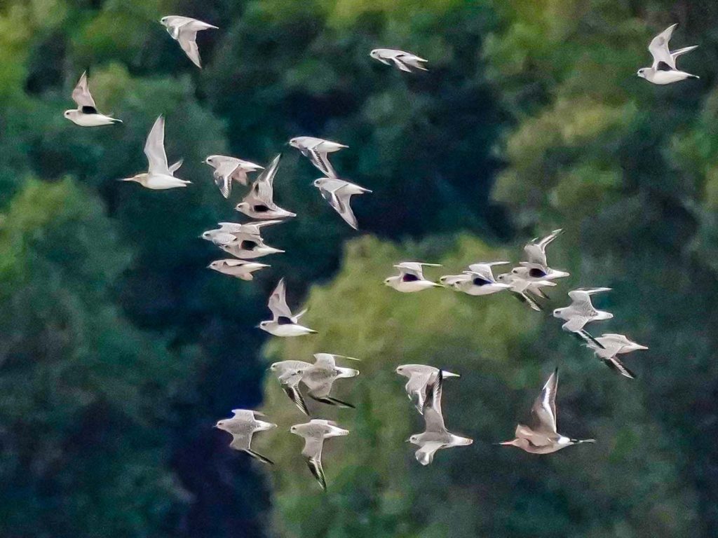 Great views were had of 20 Grey Plover flying by the boat on one side, while 30 Knot flew past us heading down the estuary. A few Dunlin were feeding on the wet mudflats; again, good numbers of Dunlin in flight were buzzing about over the mudflats. At least 100 exotic-looking Avocets were seen upstream of the Starcross Yacht Club, and in the channel off the Exe and Clyst confluence, more Avocets were seen across the mudflats as they took flight and headed further up the River Clyst.