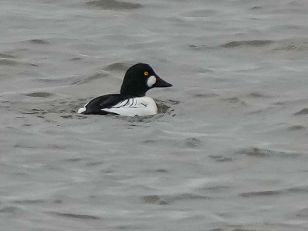 A small flock of Black-tailed Godwit was seen on the mud, and several more were spotted across the mudflats towards Topsham. Another Avocet flock was seen at close quarters off the Goat Walk area of Topsham. Common Redshanks were numerous again along this area, and a small flock of Bar-tailed Godwits flew towards the River Clyst. Lovely views of at least 11 Red-breasted Mergansers in groups of two, three and four were seen towards Topsham Quay and gave a great flypast as they headed downstream. It had been reported that a male Goldeneye was seen recently; just as we were about to turn homeward, we spotted him further upstream on the left near the wreck. This was a bonus bird for the day, and Captain Jake manoeuvred the Pride of Exmouth so most people could have a view of this striking black-and-white duck with its golden-yellow eyes.