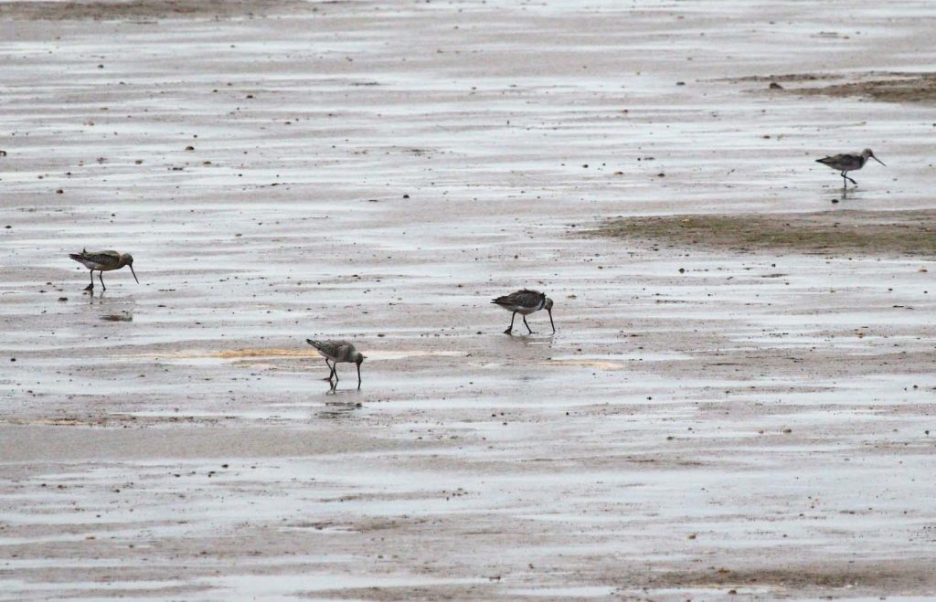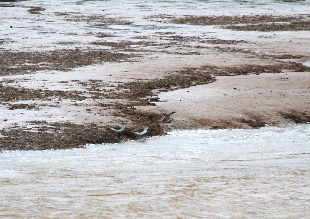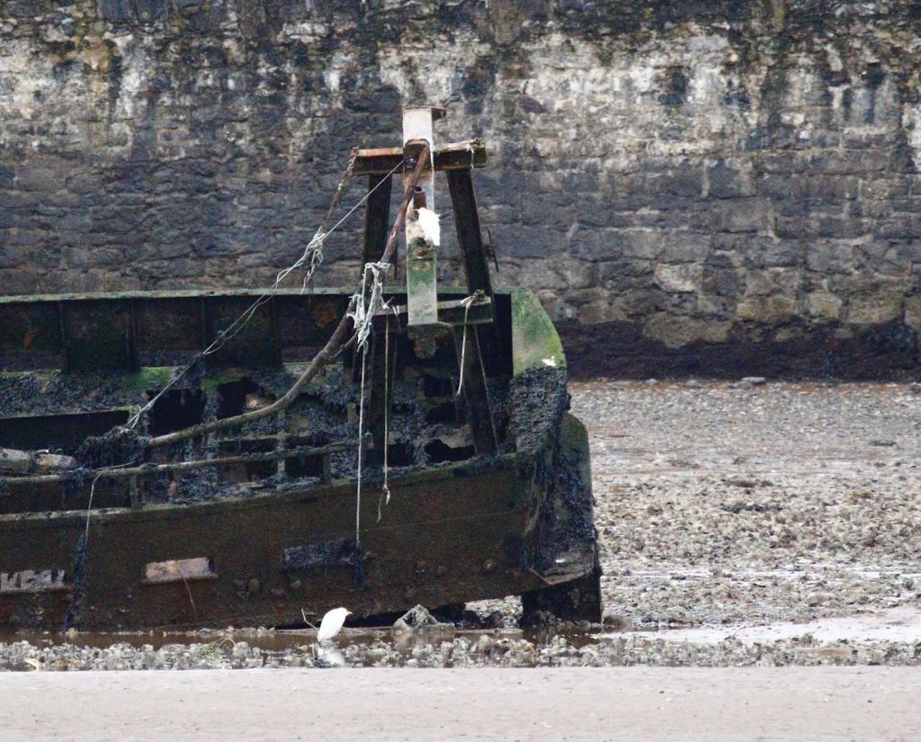 As we headed upstream towards the two wrecks, we were pleasantly surprised to see at least four Cattle Egrets – two on the wreck and two on the mud. As we passed the River Kenn, two Curlews were seen on the freshwater entering the estuary, while on the left bank of the small creek, two Greenshanks and two Redshanks were seen resting. On the Lympstone side of the estuary, a nice flock of seven Bar-tailed Godwits were seen foraging.